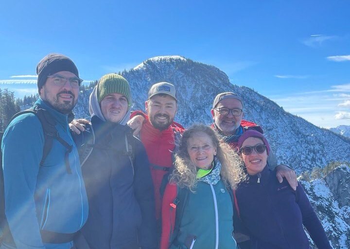 Von dort stiegen wir etwas ab, um den Bergkamm umzugehen und stiegen erneut über Schnee Richtung Jochbergalm auf. Dort haben wir dann eine halbstündige Rast eingelegt und sind dann die letzten Höhenmeter auf den Jochberg hinauf. Der Abstieg zum Kesselbergpass ist durch die vielen Begehungen recht glatt gewesen. Ein Teil von uns ist mit dem Bus zurück nach Kochel gefahren, der andere Teil ist komplett zu Fuß zurückgelaufen. Insgesamt steckten uns am Ende schlappe 21km und 1000Hm in den Beinen.