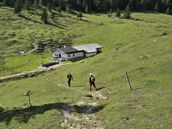 Am Bärenhaupt 1404 m wo die idyllische Pfundalm liegt, machten alle 5 Teilnehmer zusammen ihre Brotzeit, auch hier mit tollen Panorama-Blicke. Für 4 Teilnehmer wurden es also 2 Gipfel.